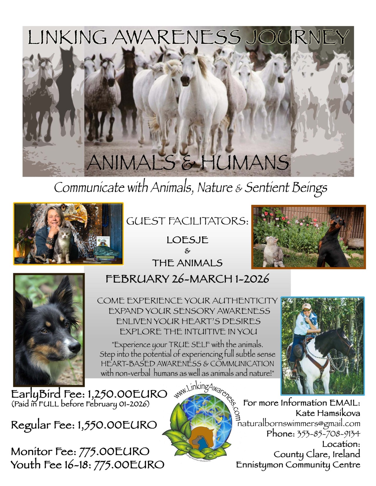 Come experience your authenticity expand your sensory awareness enliven you heart's desires, explore the intuitive in you. Experience your true self with the animals. Step into the potential of experiencing full subtle sense heart-based awareness and communication with non - verbal humans as well as animals and nature.